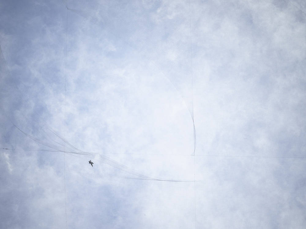 Berlin, ein Hinterhof, geschützt durch ein großes Netz, auf dem eine tote Taube liegt. Der Himmel ausgesperrt ...