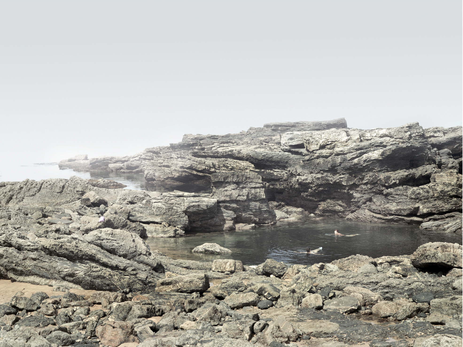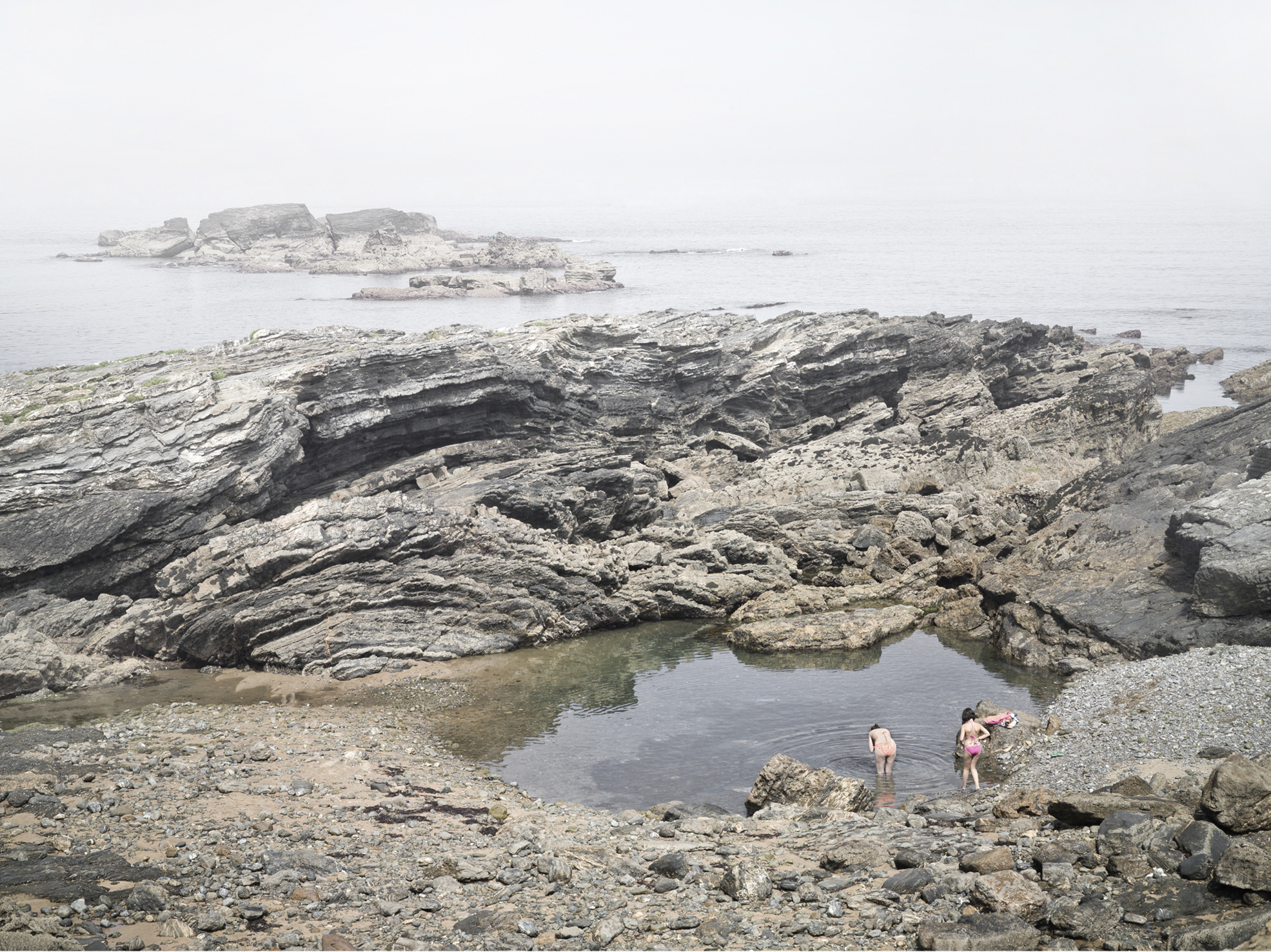 - A CHILD ON THE BEACH WITH A PINK PLASTIC BUCKET IS THROWING A STONE IN TO THE WATER | 2014 | 133 x 100 cm | 52,36 x 39,37 inch | C-Print auf Aludibond | Edition: 5+1